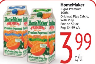HomeMaker 1 Jugos Premium 100% Original, Plus Calcio, With Pulp Env. de 59 oz.