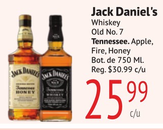 Jack Daniel's Whiskey Old No. 7 Tennessee. Apple, Fire, Honey Bot. de 750 ML.