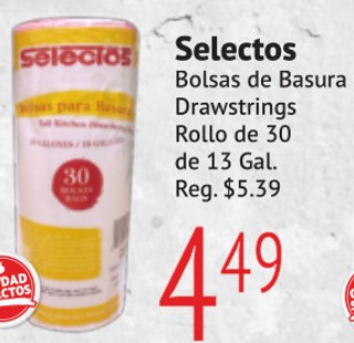 Selectos Bolsas de Basura Drawstrings Rollo de 30 de 13 Gal.