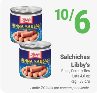 Salchichas Libby's pollo, cerdo y res lata 4.6 oz.