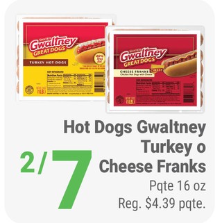Hot Dogs Gwaltney Turkey o Cheese Franks Pqte 16 oz