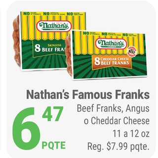 Nathan's Famous Franks Beef Franks, Angus o Cheddar Cheese 11 a 12 oz