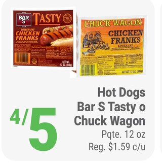Hot Dogs Bar S Tasty o Chuck Wagon pqte. 12 oz.