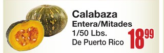 Calabaza Entera/Mitades 1/50 Lbs. De Puerto Rico.