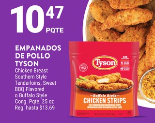 EMPANADOS DE POLLO TYSON Chicken Breast Southern Style Tenderloins, Sweet BBQ Flavored o Buffalo Style Cong. Pqte. 25 oz