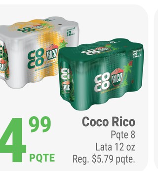 Coco Rico Pqte 8 Lata 12 oz Reg. $5.79 pqte.