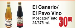 El Canario/El Pavo Vino Moscatel/Tinto 24/375 ml.