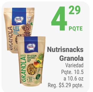 Nutrisnacks Granola Variedad Pqte. 10.5 a 10.6 oz .
