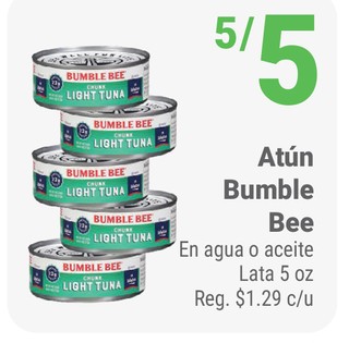 Atún Bumble Bee En agua o aceite Lata 5 oz