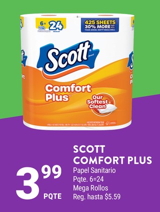 SCOTT COMFORT PLUS Papel Sanitario Pqte. 6=24 Mega Rollos