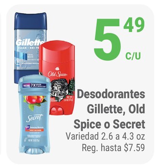 Desodorantes Gillette, Old Spice o Secret Variedad 2.6 a 4.3 oz