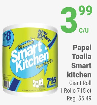 Papel Toalla Smart Kitchen Giant Roll 1 Rollo 715 ct