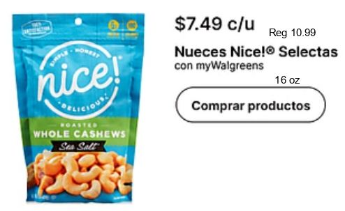 nice! delicious noasted whole cashews salt $c/u nueces nice!® selectas mywalgreens comprar productos