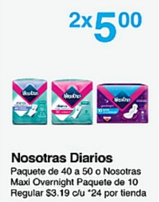 xnosotras diarios paquete maxi overnight regular $c/u *por tienda