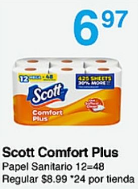 scott comfort plus sheets more papel sanitario =regular $*por tienda