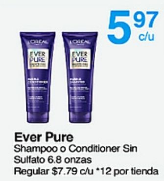 orea loreal ever pure shampoo conditioner sulfato onzas regular $c/u *por tienda