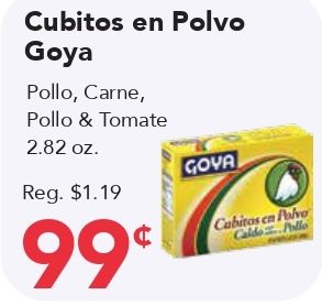 cubitos polvo goya pollo carne, tomate gova reg. caldopollo