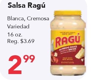salsa ragĂș blanca cremosa variedad reg. $ragu alfredo sauce bacon