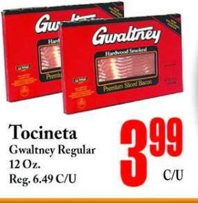 prem gwaltney hardwood smoked prentun sliced bacon tocineta regular reg.