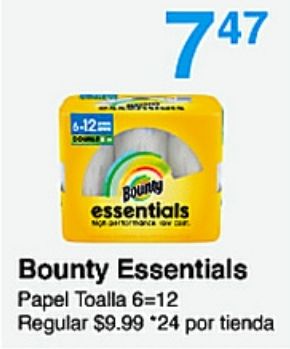 downlern bounty essentials papel toalla regular $*por tienda