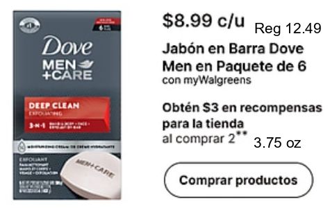 dove +care deep clean extowing exfoliant men+care $c/u jabón barra paquete mywalgreens obtén recompensas tienda comprar productos