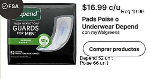 epend fresh protection guards $c/u pads poise underwear depend mywalgreens comprar productos unit
