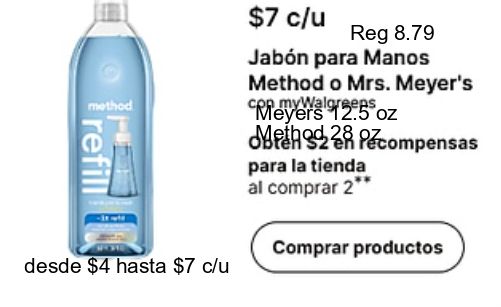 method refill $hasta $c/u jabón manos meyer's meyers pecompensas tienda comprar productos