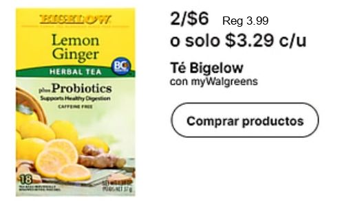 lemon ginger herbal probiotics /$reg $c/u bigelow mywalgreens comprar productos