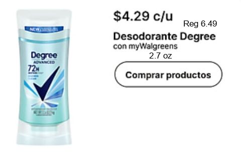 degree advanced $c/u desodorante mywalgreens comprar productos