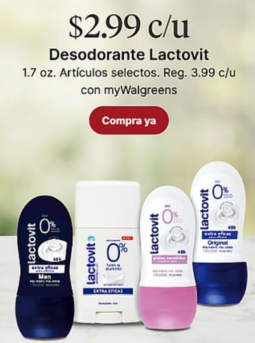 lactovit extra efica efical $c/u desodorante artÃculos selectos. reg. mywalgreens compra eficar original