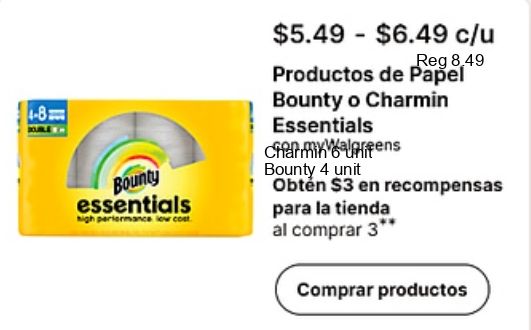 bounty essentials high performance cost $$c/u productos papel charmin cifat walgreens unit obtén recompensas tienda comprar