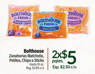 Bolthouse Zanahorias Matchstix, Patites, Chips o Sticks Hasta 16 oz.