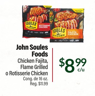 John Soules Foods Chicken Fajitas, Flame Grilled o Rotisserie Chicken Cong. de 16 oz.