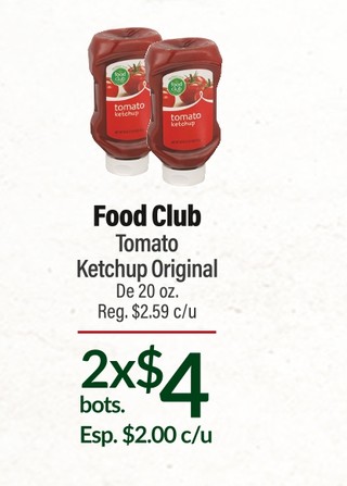Food club tomato ketchup original de 20 oz.