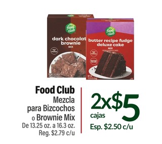 Food club mezcla para bizcochos o brownie mix de 13.25 oz. a 16.3 oz.