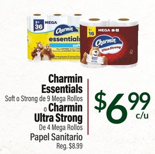 Charmin essentials soft o strong de 9 mega rollos charmin ultra strong de 4 mega rollos papel sanitario