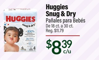 Huggies snug y dry pañales para bebes de 18 ct. a 30 ct.