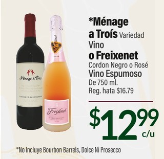 *Ménage a TroÃs Variedad Vino o Freixenet Cordon Negro o Rosé Vino Espumoso De 750 ml. Reg. hata $16.79