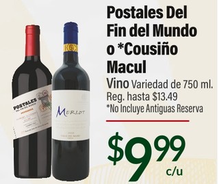 Postales Del Fin del Mundo o *Cousiño Macul Vino Variedad de 750 ml.