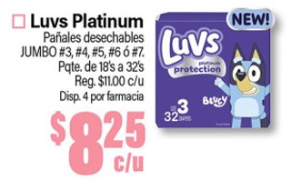 Luvs Platinum Pañales desechables JUMBO #3, #4, #5, #6 6 #7. Pqte. de 18's a 32's.