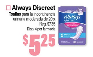 Always Discreet Toallas para la incontinencia urinaria moderada de 20's.