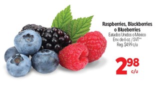 Raspberries, blackberries o blueberries Estados Unidos o Mexico env. de 6oz. SVT*