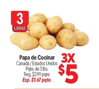 Papa de cocinar Canada o Estados Unidos pqte. de 3 lbs.
