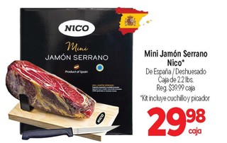 Mini Jamón Serrano Nico De España/Deshuesado Caja de 22 lbs. "Kit incluye cuchillo y picador