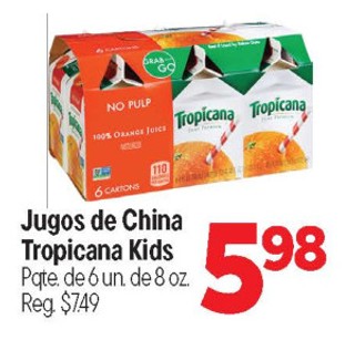 Jugos de China Tropicana Kids Pqte. de 6 un. de 8 oz.