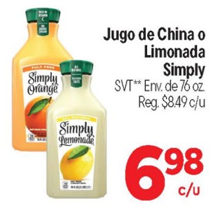 Jugo de China o Limonada Simply SVT Env. de 76 oz