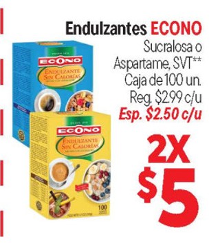 Endulzantes ECONO Sucralosa o Aspartame, Caja de 100 un.