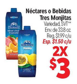 Nectares o Bebidas Tres Monjitas Variedad, Env. de 33.8 oz