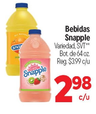 Bebidas Snapple Variedad, Bot. de 64 oz.