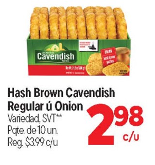 Hash brown cavendish regular u onion variedad, svt ** pqte. de 10 un.